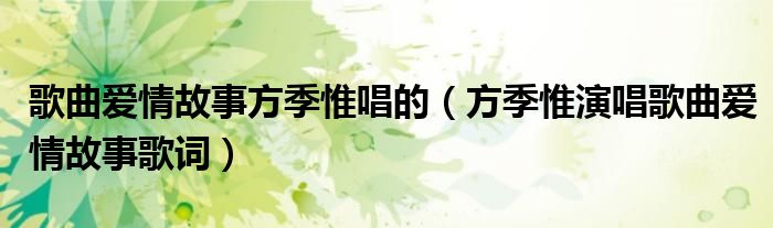 大家好,伊人來(lái)為大家解答以上問題。歌曲愛情故事方季惟唱的,方季惟演唱歌曲愛情故事歌詞很多人還不知道,現(xiàn)在讓我們一起來(lái)看看吧!