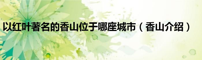 大家好,伊人來為大家解答以上問題。以紅葉著名的香山位于哪座城市,香山介紹很多人還不知道,現在讓我們一起來看看吧!