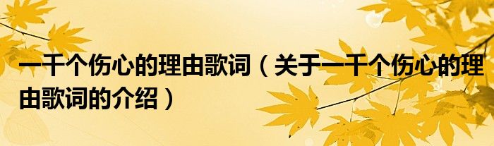 大家好,小新來為大家解答以上的問題。一千個傷心的理由歌詞,關(guān)于一千個傷心的理由歌詞的介紹很多人還不知道,現(xiàn)在讓我們一起來看看吧!