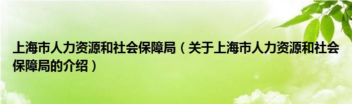 大家好,小新來為大家解答以上的問題。上海市人力資源和社會保障局,關(guān)于上海市人力資源和社會保障局的介紹很多人還不知道,現(xiàn)在讓我們一起來看看吧!