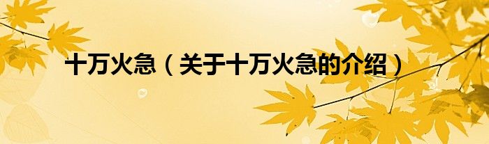 1、十萬火急,漢語成語,拼音是shí wàn huǒ jí,意思是形容事情緊急到了極點(多用于公文、電報等)。