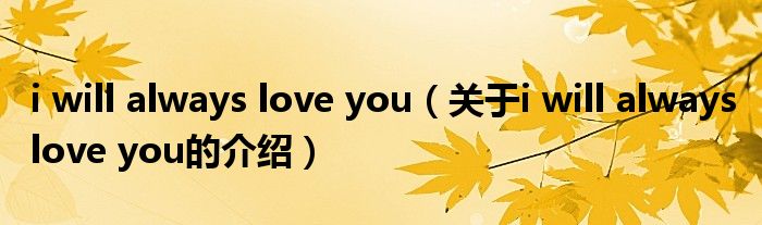 大家好,小新來為大家解答以上的問題。i will always love you,關(guān)于i will always love you的介紹很多人還不知道,現(xiàn)在讓我們一起來看看吧!