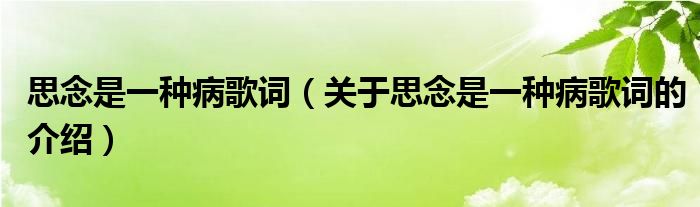 大家好,小新來(lái)為大家解答以上的問(wèn)題。思念是一種病歌詞,關(guān)于思念是一種病歌詞的介紹很多人還不知道,現(xiàn)在讓我們一起來(lái)看看吧!