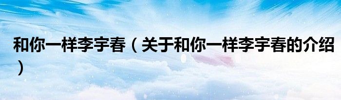 大家好,小新來為大家解答以上的問題。和你一樣李宇春,關(guān)于和你一樣李宇春的介紹很多人還不知道,現(xiàn)在讓我們一起來看看吧!