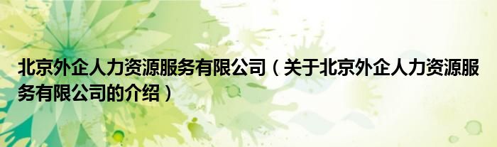 大家好,小新來為大家解答以上的問題。北京外企人力資源服務(wù)有限公司,關(guān)于北京外企人力資源服務(wù)有限公司的介紹很多人還不知道,現(xiàn)在讓我們一起來看看吧!