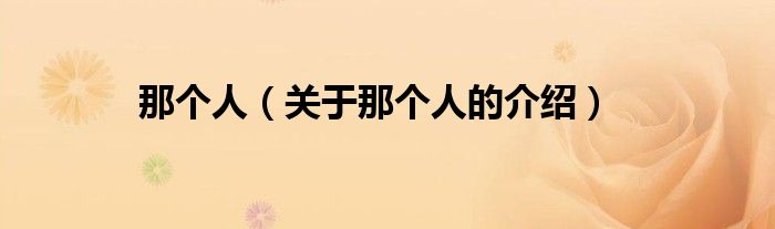 大家好,小新來為大家解答以上的問題。那個人,關(guān)于那個人的介紹很多人還不知道,現(xiàn)在讓我們一起來看看吧!