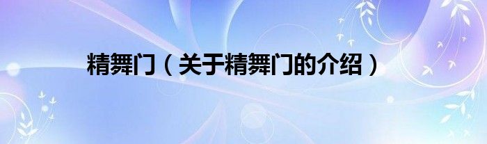 大家好,小新來為大家解答以上的問題。精舞門,關(guān)于精舞門的介紹很多人還不知道,現(xiàn)在讓我們一起來看看吧!