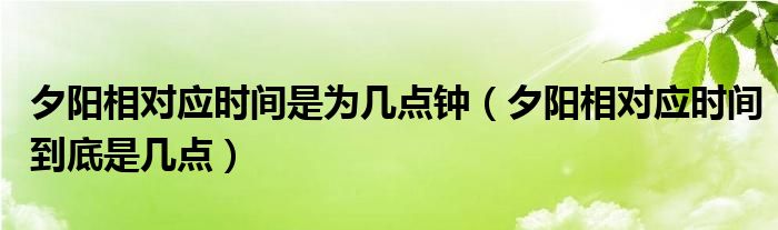 大家好,伊人來為大家解答以上問題。夕陽相對應時間是為幾點鐘,夕陽相對應時間到底是幾點很多人還不知道,現(xiàn)在讓我們一起來看看吧!