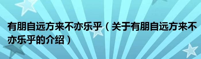 大家好,小新來為大家解答以上的問題。有朋自遠方來不亦樂乎,關于有朋自遠方來不亦樂乎的介紹很多人還不知道,現(xiàn)在讓我們一起來看看吧!