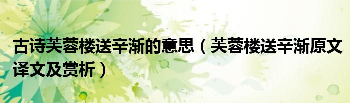 大家好,伊人來為大家解答以上問題。古詩芙蓉樓送辛漸的意思,芙蓉樓送辛漸原文譯文及賞析很多人還不知道,現(xiàn)在讓我們一起來看看吧!