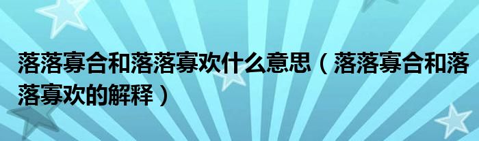 大家好,伊人來(lái)為大家解答以上問(wèn)題。落落寡合和落落寡歡什么意思,落落寡合和落落寡歡的解釋很多人還不知道,現(xiàn)在讓我們一起來(lái)看看吧!