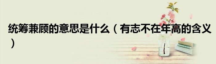 大家好,伊人來(lái)為大家解答以上問(wèn)題。統(tǒng)籌兼顧的意思是什么,有志不在年高的含義很多人還不知道,現(xiàn)在讓我們一起來(lái)看看吧!