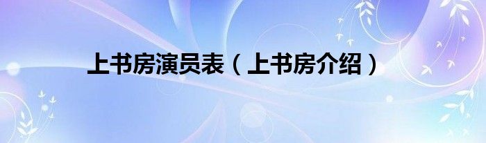 大家好,伊人來為大家解答以上問題。上書房演員表,上書房介紹很多人還不知道,現(xiàn)在讓我們一起來看看吧!