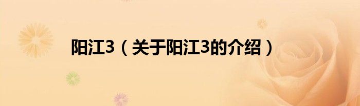大家好,小新來為大家解答以上的問題。陽江3,關(guān)于陽江3的介紹很多人還不知道,現(xiàn)在讓我們一起來看看吧!