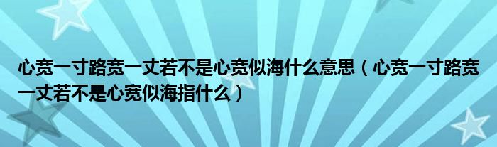 大家好,伊人來為大家解答以上問題。心寬一寸路寬一丈若不是心寬似海什么意思,心寬一寸路寬一丈若不是心寬似海指什么很多人還不知道,現(xiàn)在讓我們一起來看看吧!