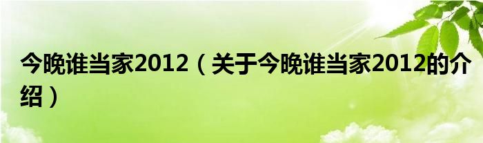 大家好,小新來(lái)為大家解答以上的問(wèn)題。今晚誰(shuí)當(dāng)家2012,關(guān)于今晚誰(shuí)當(dāng)家2012的介紹很多人還不知道,現(xiàn)在讓我們一起來(lái)看看吧!