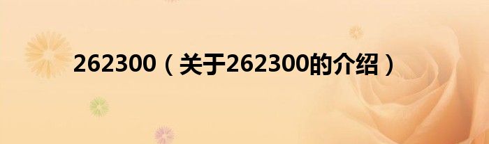 大家好,小新來為大家解答以上的問題。262300,關于262300的介紹很多人還不知道,現(xiàn)在讓我們一起來看看吧!