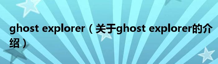 大家好,小新來為大家解答以上的問題。ghost explorer,關于ghost explorer的介紹很多人還不知道,現(xiàn)在讓我們一起來看看吧!