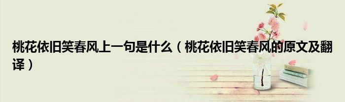 大家好,伊人來為大家解答以上問題。桃花依舊笑春風(fēng)上一句是什么,桃花依舊笑春風(fēng)的原文及翻譯很多人還不知道,現(xiàn)在讓我們一起來看看吧!