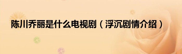 大家好,伊人來為大家解答以上問題。陳川喬麗是什么電視劇,浮沉劇情介紹很多人還不知道,現(xiàn)在讓我們一起來看看吧!