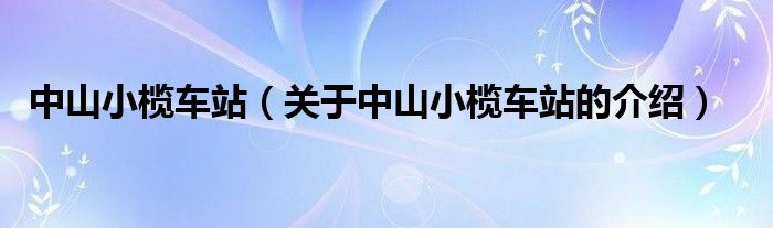 大家好,小新來為大家解答以上的問題。中山小欖車站,關(guān)于中山小欖車站的介紹很多人還不知道,現(xiàn)在讓我們一起來看看吧!