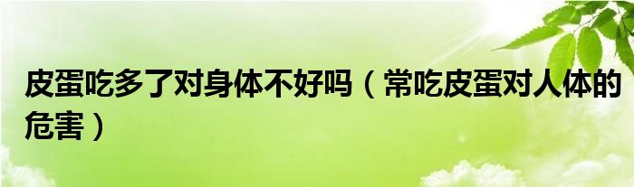 大家好,伊人來(lái)為大家解答以上問(wèn)題。皮蛋吃多了對(duì)身體不好嗎,常吃皮蛋對(duì)人體的危害很多人還不知道,現(xiàn)在讓我們一起來(lái)看看吧!