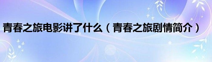 大家好,伊人來(lái)為大家解答以上問(wèn)題。青春之旅電影講了什么,青春之旅劇情簡(jiǎn)介很多人還不知道,現(xiàn)在讓我們一起來(lái)看看吧!