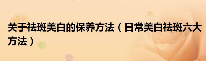 大家好,伊人來為大家解答以上問題。關(guān)于祛斑美白的保養(yǎng)方法,日常美白祛斑六大方法很多人還不知道,現(xiàn)在讓我們一起來看看吧!