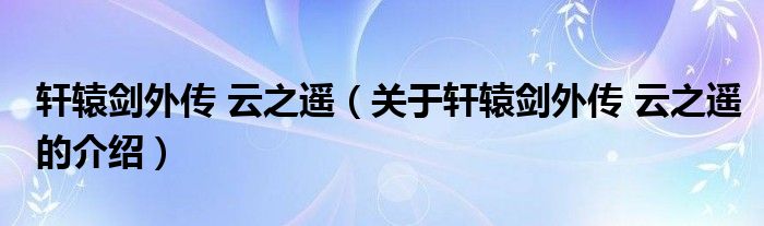 大家好,小新來為大家解答以上的問題。軒轅劍外傳 云之遙,關(guān)于軒轅劍外傳 云之遙的介紹很多人還不知道,現(xiàn)在讓我們一起來看看吧!