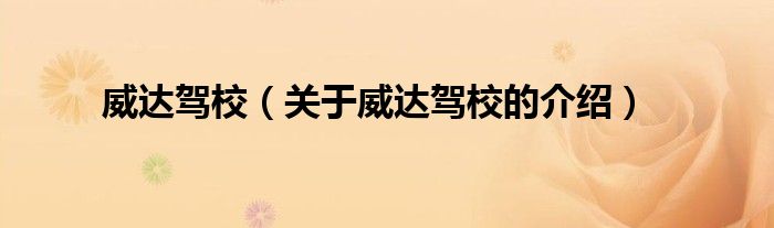 大家好,小新來(lái)為大家解答以上的問(wèn)題。威達(dá)駕校,關(guān)于威達(dá)駕校的介紹很多人還不知道,現(xiàn)在讓我們一起來(lái)看看吧!