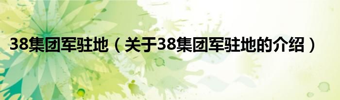 大家好,小新來為大家解答以上的問題。38集團(tuán)軍駐地,關(guān)于38集團(tuán)軍駐地的介紹很多人還不知道,現(xiàn)在讓我們一起來看看吧!