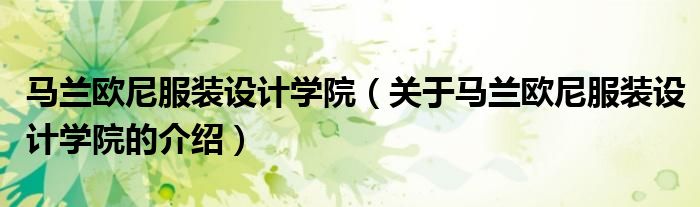 大家好,小新來為大家解答以上的問題。馬蘭歐尼服裝設(shè)計學(xué)院,關(guān)于馬蘭歐尼服裝設(shè)計學(xué)院的介紹很多人還不知道,現(xiàn)在讓我們一起來看看吧!