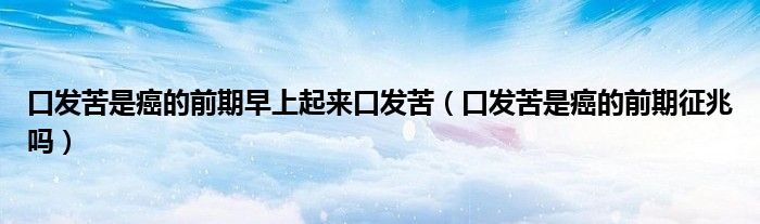 大家好,知識(shí)小編來為大家解答以上的問題??诎l(fā)苦是癌的前期早上起來口發(fā)苦,口發(fā)苦是癌的前期征兆嗎很多人還不知道,現(xiàn)在讓我們一起來看看吧!
