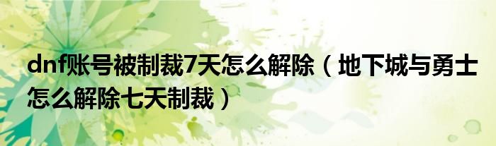 摘要大家好,小生來為大家講解下。dnf賬號被制裁7天怎么解除,地下城與勇士怎么解除七天制裁很多人還不知道,現(xiàn)在讓我們一起來看看吧!1、制裁