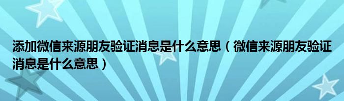摘要大家好,小生來為大家講解下。添加微信來源朋友驗證消息是什么意思,微信來源朋友驗證消息是什么意思很多人還不知道,現(xiàn)在讓我們一起來看看