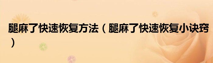 大家好,知識(shí)小編來(lái)為大家解答以上的問題。腿麻了快速恢復(fù)方法,腿麻了快速恢復(fù)小訣竅很多人還不知道,現(xiàn)在讓我們一起來(lái)看看吧!