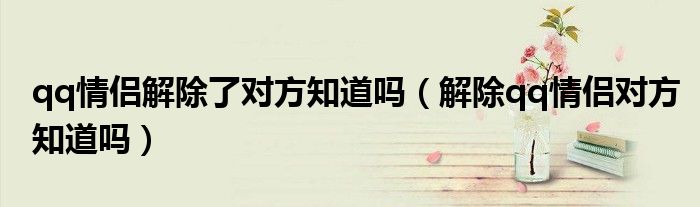 大家好,小生來(lái)為大家講解下。qq情侶解除了對(duì)方知道嗎,解除qq情侶對(duì)方知道嗎很多人還不知道,現(xiàn)在讓我們一起來(lái)看看吧!
