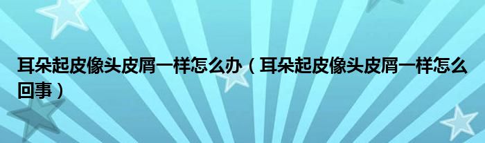 摘要大家好,知識(shí)小編來(lái)為大家解答以上的問(wèn)題。耳朵起皮像頭皮屑一樣怎么辦,耳朵起皮像頭皮屑一樣怎么回事很多人還不知道,現(xiàn)在讓我們一起來(lái)看