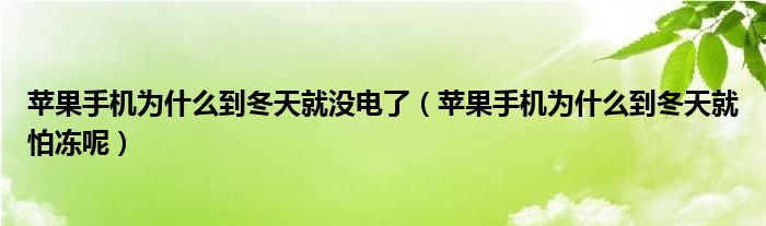大家好,小生來為大家講解下。蘋果手機(jī)為什么到冬天就沒電了,蘋果手機(jī)為什么到冬天就怕凍呢很多人還不知道,現(xiàn)在讓我們一起來看看吧!