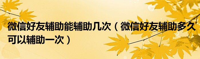 大家好,小生來(lái)為大家講解下。微信好友輔助能輔助幾次,微信好友輔助多久可以輔助一次很多人還不知道,現(xiàn)在讓我們一起來(lái)看看吧!