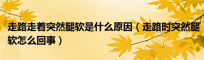 大家好,知識(shí)小編來為大家解答以上的問題。走路走著突然腿軟是什么原因,走路時(shí)突然腿軟怎么回事很多人還不知道,現(xiàn)在讓我們一起來看看吧!