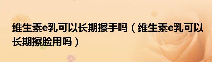 摘要大家好,知識小編來為大家解答以上的問題。維生素e乳可以長期擦手嗎,維生素e乳可以長期擦臉用嗎很多人還不知道,現(xiàn)在讓我們一起來看看吧!