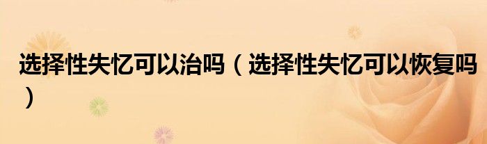 大家好,知識小編來為大家解答以上的問題。選擇性失憶可以治嗎,選擇性失憶可以恢復(fù)嗎很多人還不知道,現(xiàn)在讓我們一起來看看吧!