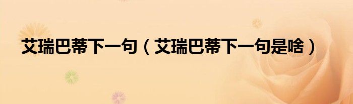 大家好,小生來為大家講解下。艾瑞巴蒂下一句,艾瑞巴蒂下一句是啥很多人還不知道,現(xiàn)在讓我們一起來看看吧!