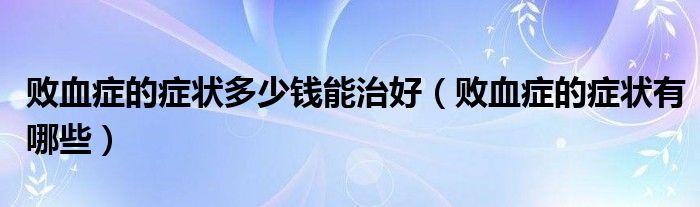摘要大家好,知識小編來為大家解答以上的問題。敗血癥的癥狀多少錢能治好,敗血癥的癥狀有哪些很多人還不知道,現(xiàn)在讓我們一起來看看吧!膿毒癥