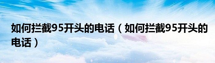 大家好,小生來為大家講解下。如何攔截95開頭的電話,如何攔截95開頭的電話很多人還不知道,現(xiàn)在讓我們一起來看看吧!