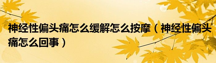 大家好,知識小編來為大家解答以上的問題。神經(jīng)性偏頭痛怎么緩解怎么按摩,神經(jīng)性偏頭痛怎么回事很多人還不知道,現(xiàn)在讓我們一起來看看吧!