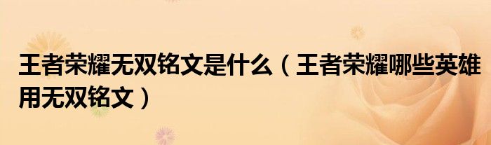 大家好,小生來為大家講解下。王者榮耀無雙銘文是什么,王者榮耀哪些英雄用無雙銘文很多人還不知道,現(xiàn)在讓我們一起來看看吧!