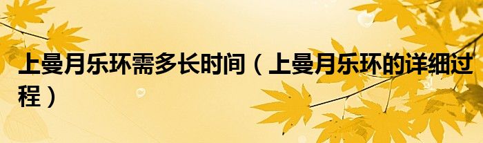 大家好,知識小編來為大家解答以上的問題。上曼月樂環(huán)需多長時間,上曼月樂環(huán)的詳細過程很多人還不知道,現(xiàn)在讓我們一起來看看吧!