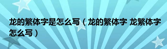大家好,小生來為大家講解下。龍的繁體字是怎么寫,龍的繁體字 龍繁體字怎么寫很多人還不知道,現(xiàn)在讓我們一起來看看吧!